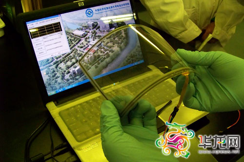 华龙网1月22日20时30分讯(记者李辉、实习生董静) 市场上畅销的平板电脑、智能手机,就像“板砖”一样,如果可以卷曲或者折叠起来,何其方便?今日,记者来到中国科学院重庆绿色智能技术研究院,看到他们最新研制的7英寸石墨烯触摸屏,随意卷曲也不会影响使用效果。