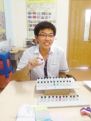 “我第一次进实验室的时候才4岁,后来就总想着自己也能搞些科研的东西。”胡舒贺说,自己的目标就是考入北京大学读材料专业,将来也做一名材料领域的科研工作者。(记者 郭美佳 实习生 唐小童/报道 李煦/摄)