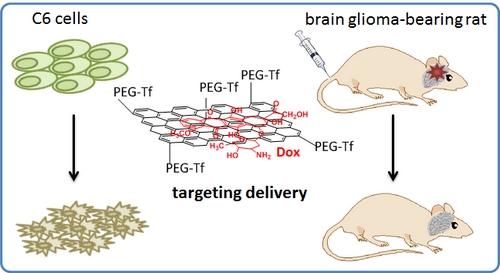 图1. 转铁蛋白修饰的氧化石墨烯用于脑胶质瘤靶向药物递送示意图