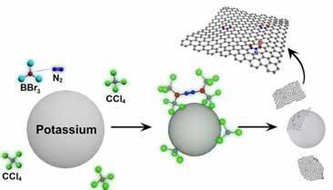 利用该法制备掺杂石墨烯所需要准备的是氧化石墨烯薄膜。而氧化石墨烯的制备比石墨烯的制备就要简单且耗费也不大,并且制备条件也不用高温等的苛刻条件,室温下便可进行(当然,最后还是要稍稍高温将制备的氧化石墨烯溶液烘烤成膜,但温度远没制石墨烯的高)。当有了氧化石墨烯薄膜,(我们仍以掺氮石墨烯为例)便可将该膜和一些含氮化合物如尿素或三聚氰胺等放入相应的反应炉中进行高温反应。由于含氮化合物在高温下会分解出许多含氮气体(如氨气等),他们会与氧化石墨烯表面的含氧官能团(如羧基等)发生相应的有机反应,以生成含氮的官能团,从而达到掺杂的目的。