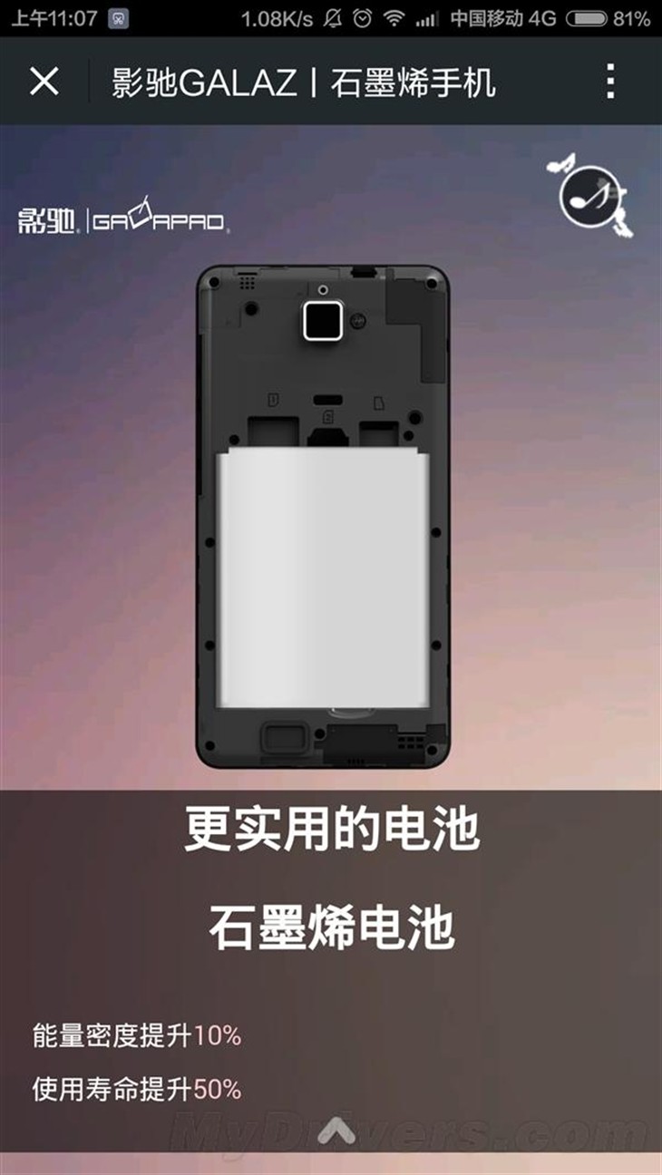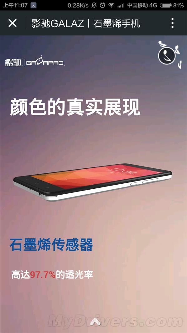 该机号称在屏幕、电池以及导热材料部分均采用了石墨烯,可以让屏幕色彩更纯净、电池更耐用,同时解决手机发烫的困扰。