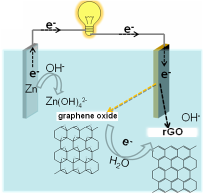 这个现象一开始令人感到困惑,后来仔细一想发现锌粉可能更多的是起到电子给予体的作用,实际发挥还原效果的应该是传递过去的电子。应该说这个想法是我后续的Zn-GO原电池以及原位电化学加工组装工作的基础。这个地方我先介绍原电池方面的故事。