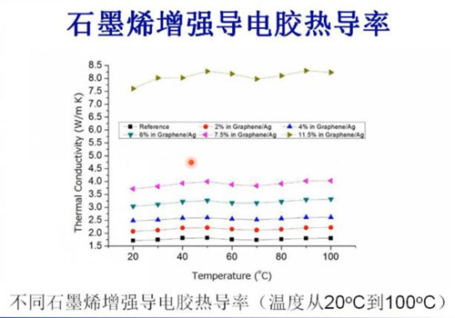 以热测试芯片模拟真正的发热环境,单层石墨烯具有明显的散热作用,但是继续加大功率,石墨烯就会被烧掉。可见单层石墨烯散热能力有限,还要向多层或石墨烯膜发展。刘教授还介绍了石墨烯薄膜,以及化学氧化还原法制备石墨烯薄膜的工艺,如何与载体结合,并对石墨烯薄膜热导率与石墨、铜进行了比较。刘教授以严谨的试验测试数据展现了不同石墨烯在增强导电胶热导率中的作用。