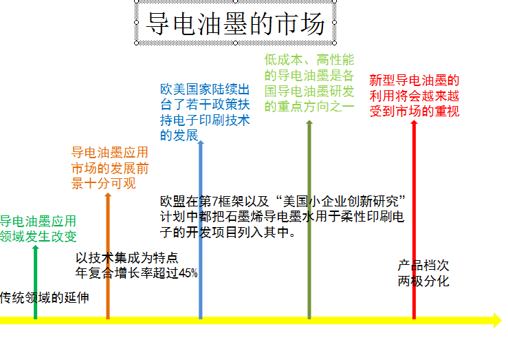 欧盟在第7框架以及“美国小企业创新研究” 计划中都把石墨烯导电墨水用于柔性印刷电子的开发项目列入其中。欧美国家陆续出台了若干政策扶持电子印刷技术的发展,我国也会出台相关政策。