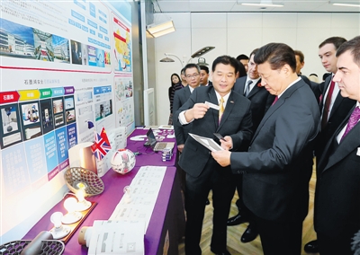 习近平听取了诺贝尔物理学奖获得者诺沃肖洛夫教授介绍石墨烯研究情况,参观了石墨烯产品展示和生产石墨烯的地下超净实验室。