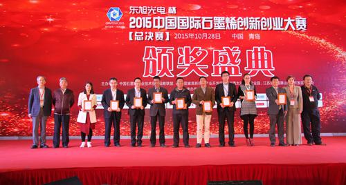 10月28日,由中国石墨烯产业技术创新战略联盟、青岛国家高新技术产业开发区、江苏省无锡惠山经济开发区管委会、常州西太湖科技产业园联合主办,国际石墨烯创新中心具体承办,东旭光电股份有限公司协办的“东旭光电”杯2015中国国际石墨烯创新创业大赛——青岛总决赛在青岛国际会展中心圆满落幕。