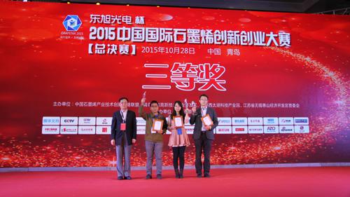 经过激烈的争夺,参赛的十六支队伍中有六个项目脱颖而出成为大赛的获胜者。由清华大学朱宏伟教授和澳大利亚阿德莱德大学Dusan Losic教授组成的中澳合作团队获得年度总冠军;青岛华高墨烯科技有限公司和济南大学获得二等奖;东南大学、中科院上海微系统所和北京动存科技有限公司获得三等奖。创业导师团为优秀奖、三等奖及二等奖项目团队颁奖。