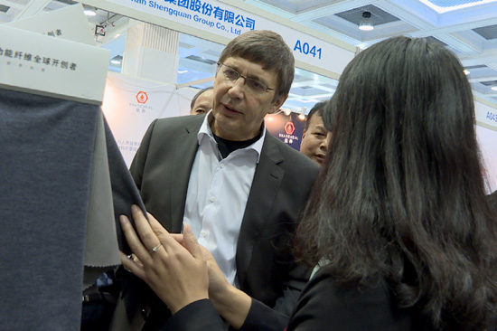 随后,安德烈•海姆(AndreGeim)饶有兴致地参观了圣泉集团的圣养服饰展台,对圣泉集团研发智造的圣养石墨烯服饰系列产品给予了高度评价,对公司在石墨烯研发应用领域取得的重大突破表示赞扬,他认为圣泉集团在如此短时间内,创造了石墨烯在消费品领域商品化应用的重大突破,是个奇迹,令人感到惊喜。在现场连伸大姆指,称赞圣泉圣养世界第一。