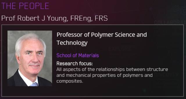 本次的合作项目是将由英国“国家石墨烯研究院(NGI)”的罗伯特·杨格教授领衔。罗伯特·杨格教授是英国皇家学会院士,在复合材料研究方面具有丰富的经验。其近期的研究重点是研究石墨烯以及化学改性石墨烯的结构/性质相互关系,以及这些材料在高性能聚合物基纳米复合材料中的应用。