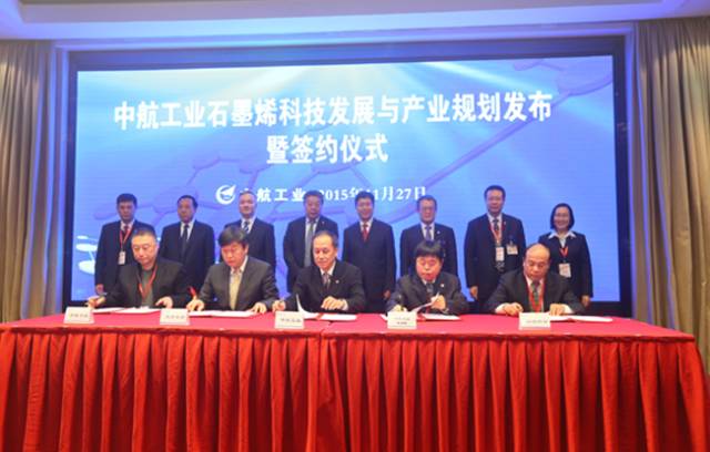 11月27日,中航工业石墨烯科技发展与产业规划发布暨签约仪式在京举行。未来几年,中航工业将着力打造系列化石墨烯产业集群,形成完整的石墨烯产业链,重点开展石墨烯应用基础研究,新技术探索和新领域开拓。将依托齐全的专业设置和强大的技术人才优势,开展石墨烯应用新概念激荡、新技术探索和新领域开拓,抢占技术研究前沿阵地,为产业后续发展提供创新源泉。