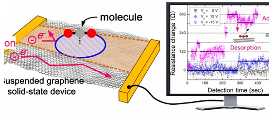 该研究团队研发出的石墨烯传感器在通电后,可使单个的二氧化碳分子一个一个吸附到石墨烯材料上,并在分子水平上检测其浓度。其具体方法是,通过监测石墨烯材料的电阻值,石墨烯材料对二氧化碳分子的吸附和释放会以电阻“量子化”波动的形式被检测到。在实验中,研究人员只花费了几分钟就检测到浓度约为30ppb的二氧化碳气体。