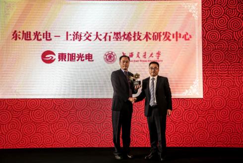 此外,东旭光电投资负责人王忠辉和上海交通大学电子信息与电气工程学院副院长王延峰还一起为新成立的“东旭光电-上海交大石墨烯研发中心”揭牌。