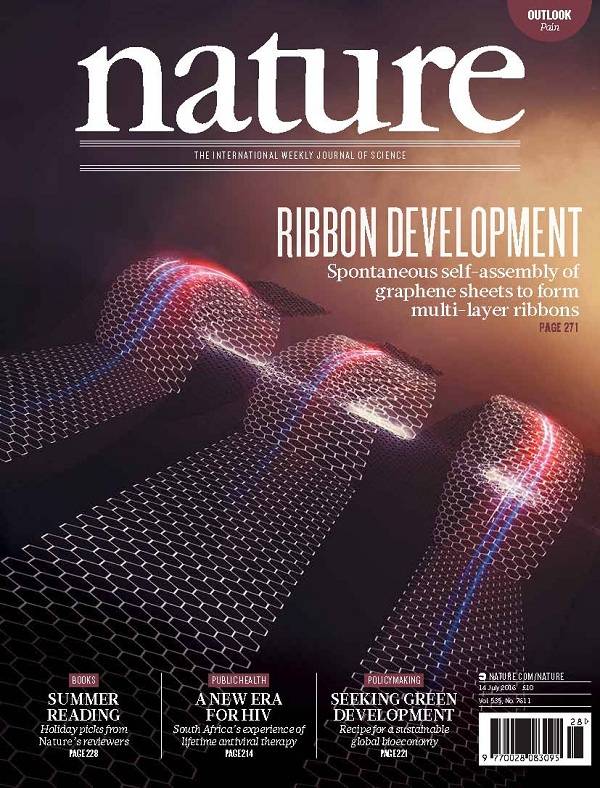 Nature封面出来好久了,网上也有一些报道,我看了几篇,语焉不详,稀里糊涂一篇文章就完事了,总是不过瘾,便觉得有写一点东西的必要了。既然是封面文章,封面上的内容一定是作者和编辑精挑细选出来的。先看封面(Ribbon Development-Spontaneous self-assembly of graphene sheets to form multi-layer ribbons):丝带开拓-石墨烯层的自发的自组装形成多层丝带。如果别人问你石墨烯的那个Nature封面讲的啥,你就说这个。