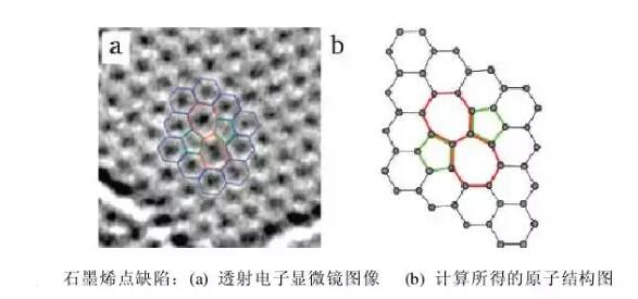 在早期对于碳纳米管和石墨结构的研究中,研究者们多次发现了碳纳米管和石墨的结构缺陷,由此不难想象,在原子水平上,石墨烯也应该存在缺陷。实际上,真实存在的石墨烯并不是一张绝对平整的由碳六元环构成的大分子。研究表明,石墨烯本身具有一定的褶皱,并不绝对平整;而且,由于石墨烯并不是天然条件下存在的产物,人工制备的石墨烯基于各种制备方法的限制,其结构中存在各种缺陷,这些缺陷影响着石墨烯的物理化学性质,因此很多研究者使用透射电子显微镜(TEM)和扫描隧道显微镜(STM)在原子分辨率水平下观察研究石墨烯缺陷。