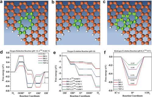图三:氧还原,氧产生,氢产生反应三功能性在缺陷石墨烯中发生机理