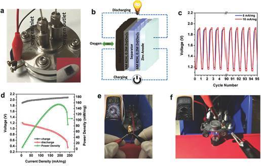 a) 锌空气电池两电极测试器件
