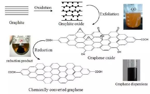 相比其他操作复杂、成本高或产率低的制备方法,氧化还原法可以大量、高效地制备出高质量的石墨烯,且过程相对简单,是目前大规模制备石墨烯材料的有效的途径。