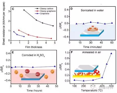 图2 “玻璃石墨烯”的抗震、耐蚀、耐热性能