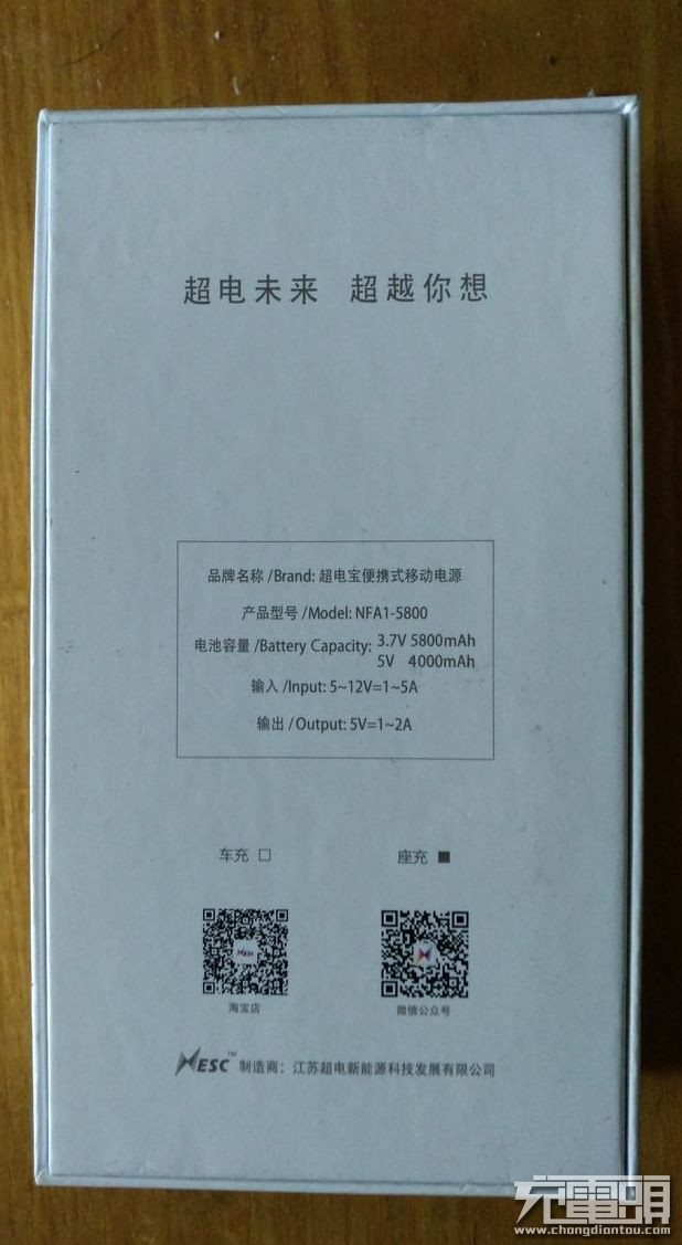 先看看外观咋样再说。包装就是现在手机移动电源常用的纸盒形式。正面写着充满只需800s。