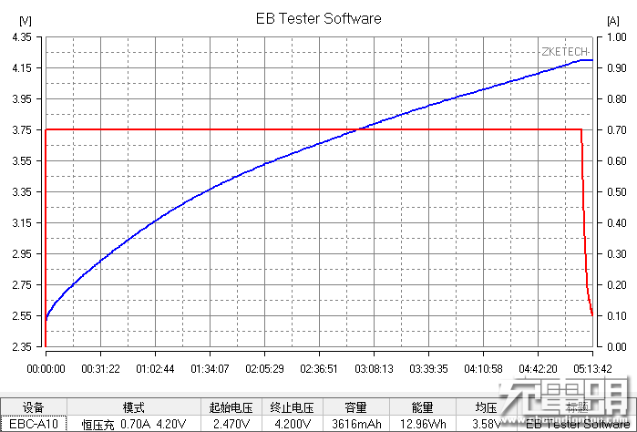 拆开移动电源后用EBD-B10监测了下电池的充电曲线,如下图所示: