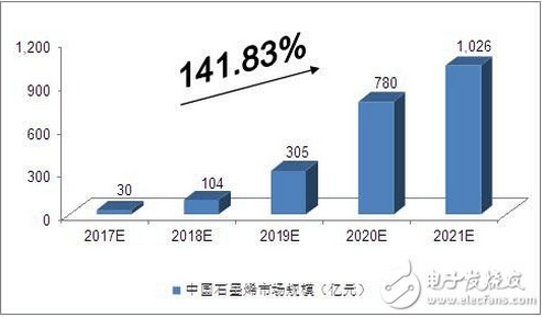 综合以上因素,我们预计,2017年中国石墨烯市场规模将达到30亿元,未来五年(2017-2021)年均复合增长率约为141.83%,2021年中国石墨烯市场规模将达到1,026亿元。