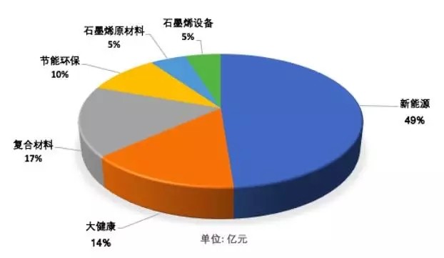 石墨烯在节能环保领域的应用主要涉及润滑油、电致加热室内供暖、水处理及海水淡化系统、空气净化装置等方向。其中,电致加热室内供暖系统的发展是基于煤改电的大趋势和石墨烯安全、节电的性能,其在热管理领域发展比较迅速,2016年该领域的销售额约为4亿。该领域的重点产品主要有石墨烯远红外地暖、石墨烯远红外墙暖、石墨烯远红外壁画等,江苏同创、熊爸爸、爱客家是该领域的主要企业。该领域虽然发展迅速但是相关企业数量比较少,尚未在全国形成一定的规模。而石墨烯润滑油的市场化产品主要有石墨烯添加剂和石墨烯润滑油,其代表企业为唐山建华、东莞天润、碳世纪。