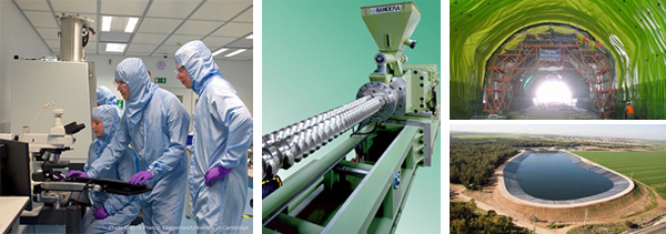可预见的应用领域包括废弃物填埋、采矿、污水处理厂、水库、水坝和其他储液池的衬砌系统等,在替代传统EKG材料(电动土工合成材料)方面具有明显优势,尤其是在储液池漏液检测方面极具潜力。