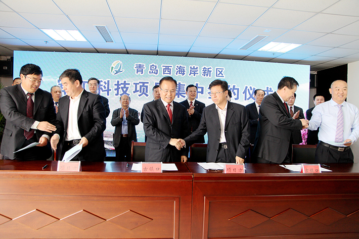 青岛华升石墨烯研究院总经理曹殿学与青岛市黄岛区政府举行签约仪式
