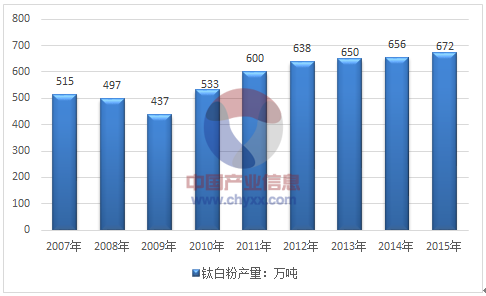2015年受市场需求下滑以及节能减排、高耗能、高污染产业资源整合等政策的深度管控,人力红利削弱劳动成本提高,以及相关企业的环保投入加大,生产成本不断攀高。而另一方面市场需求疲软导致价格下滑,原计划投产的装置均陆续推迟,也暂无新增产能投产。据中国钛白粉行业协会统计,2015年现有产能329.6万t,在建产能125.5万t,拟建产能65万t,市场供大于求的现实依然存在。市场需求迫使2015年首次出现17年间全行业总产量下降。