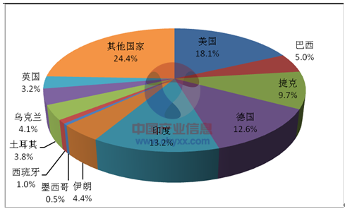 德国、美国、捷克、巴西等国家是全球最主要的高岭土产区。2015年美国高岭土产量为616万吨,占全球总产量的18.1%
