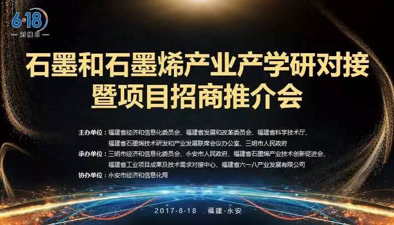 福建省经信委联合省发改委、省科技厅、省石墨烯办、三明市人民政府于2017年8月18-19日在三明市(永安)召开石墨和石墨烯产业产学研对接暨项目招商推介会。