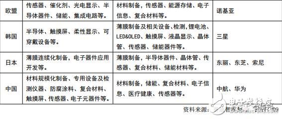 基于石墨烯卓越的性能、广阔的市场前景和潜在的巨大经济效益,各国都在加快石墨烯的研发和产业布局。但相比较而言,美国、日本等发达国家更加注重在石墨烯基础理论研究及高端应用方面加强前瞻性布局,不论是从产业发展的方向、全产业链和还是专利布局重点,都更加注重产业发展的战略性和前瞻性,并且尤其注重发挥龙头企业的引领作用。如韩国石墨烯产业发展就主要围绕三星集团开展,重点选择其擅长的电子器件、光电显示、新能源等领域加强对石墨烯全产业链的全面布局和保护,确保了韩国的石墨烯产业在全球的领先地位,除此以外,日本的东丽、东芝、索尼,美国的IBM、波音、英特尔,欧洲的诺基亚等众多大型龙头企业均在从事石墨烯的开发及商业化应用推广。