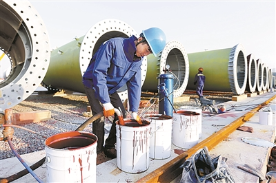 中国宁波网讯 近日,舟山500千伏联网工程建设如火如荼,十余名工作人员正向堆放于地面的铁塔杆管喷刷来自宁波的石墨烯改性重防腐涂料,为在建的世界最高铁塔——380米高的金塘岛输电铁塔穿上一身“铠甲”。