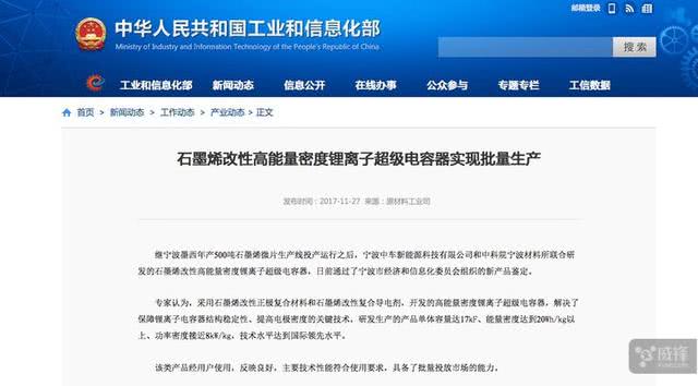 联系到今天我们看到的这几则新闻,你又会发现其实大家说的依然是石墨烯基锂电池,三星电子在公告中表示“将这些石墨烯球用作先进锂离子电池材料”,而中科院和宁波中车新能源做的也是“石墨烯该性高能量密度锂离子超级电容器”,至于顺丰和饿了么的送货车就更不用说了。