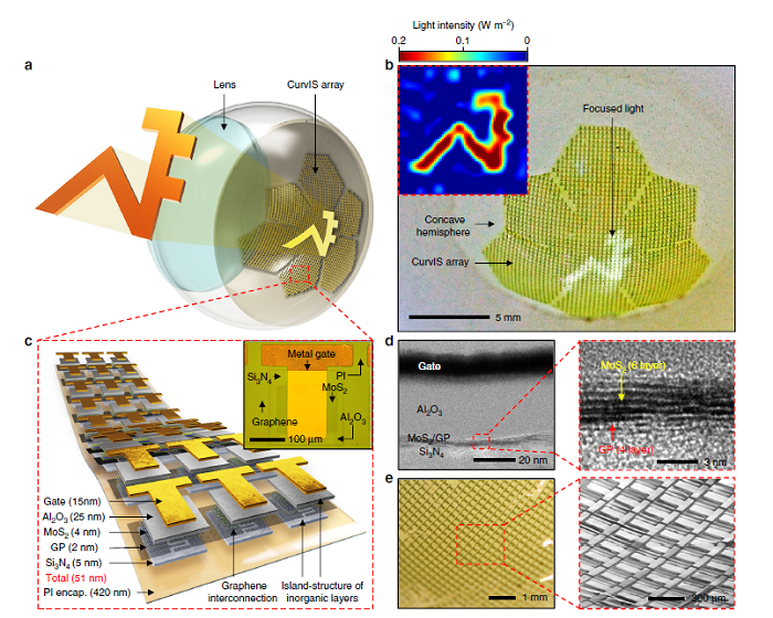 a 基于MoS2-石墨烯异质结构的高密度CurvIS阵列的示意图;