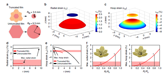 图2 半球形圆顶器件阵列上诱导应变的理论分析