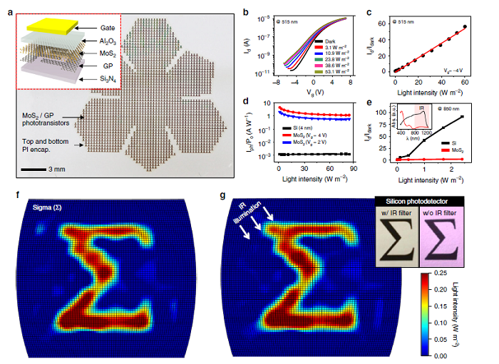 图1 基于MoS2-石墨烯异质结构的高密度弯曲图像传感器阵列