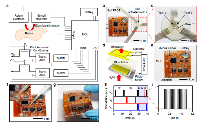 研究人员提出了一种利用高密度MoS2-石墨烯曲面图像传感器阵列制备人眼激发软光电子器件的方法。这种装置可以检测光学信号,并且将编程的电刺激施加到视神经,而对视网膜的机械副作用很小,是一种极具应用前景的电子器件。