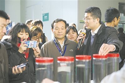 石墨烯制造业创新中心揭牌仪式上,工作人员为嘉宾讲解石墨烯材料。(童丁毅金鹭摄)