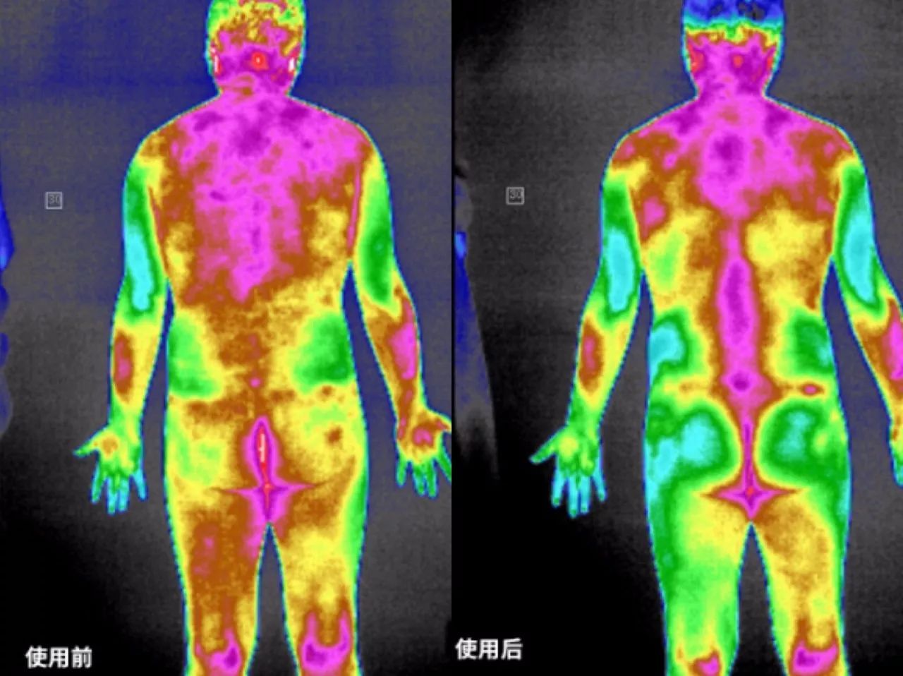 如下图所示,红色部分为湿寒气聚集区域,使用产品后,湿寒区域大幅减少。