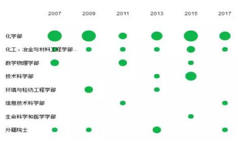 图4 2007-2017年新增石墨烯相关研究的两院院士专业分布