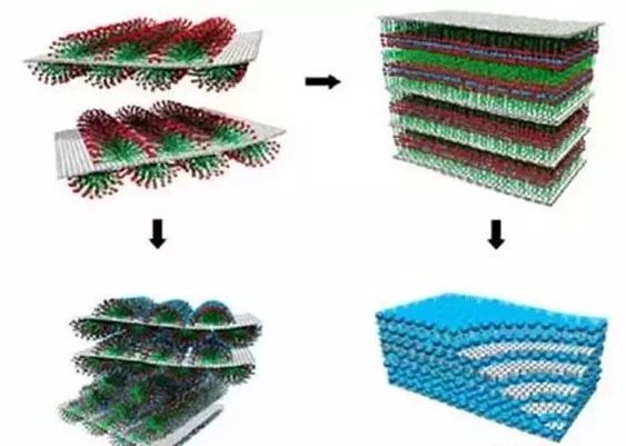 基于石墨烯的层状复合材料:将第二组分和石墨烯片交替堆积而成,该结构可以使石墨烯与第二组分的接触面积最大化,并有利于电子的产生、传输和分离。