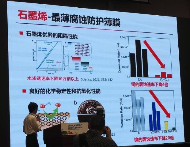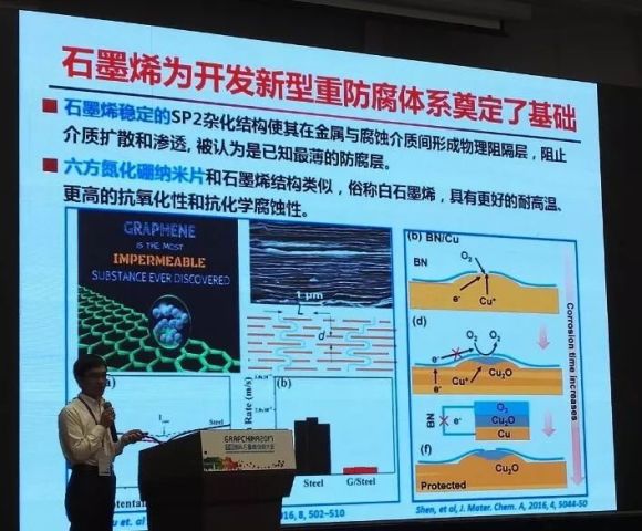 9月25日,在南京举办的石墨烯创新大会上,中科院宁波材料所王立平研究员做了题为《石墨烯改性防腐新型海洋重防腐涂料体系及工程应用进展》的专题报告,介绍了我国石墨烯改性防腐涂料的研发及产业化进展。