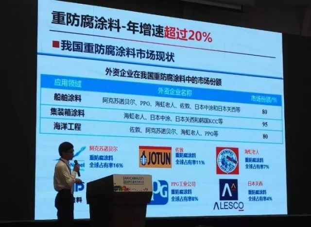 据王立平研究员介绍,目前全球重防腐涂料市场每年在以20%的速度高速增长,但是国内重防腐涂料市场80%以上的份额均被国外高端品牌占据,国内产品严重短缺。