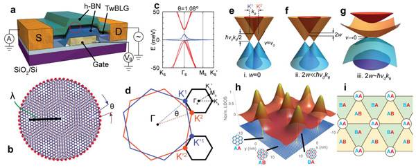 近日,美国宾夕法尼亚大学Eugene J. Mele教授评述了麻省理工学院曹原博士的成果,评说他们制备了旋转扭曲的双层石墨烯,通过电子之间的相互作用来控制整个体系的电子态。旋转产生的位错使石墨烯层中的电子能带结构不再对齐,单胞变大。研究发现,堆叠的双层石墨烯中,电学行为对原子排列非常敏感,影响层间电子移动。相关评述以题为“Novel electronic states seen in graphene”发表在了Nature上。