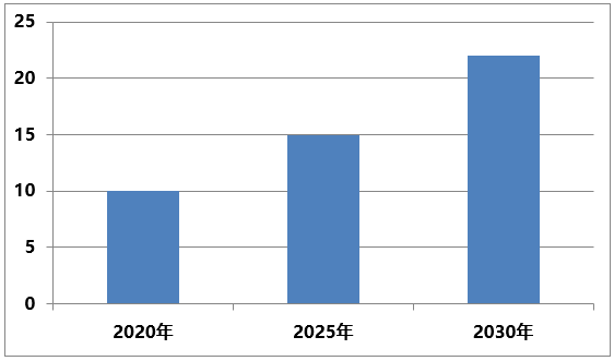 2020-2030年石墨烯在生物医药行业的市场规模预测(亿元)