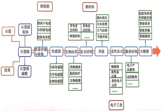 目前,石墨烯在新能源、复合材料、热管理、大健康等领域已有相关产品问世,随着研发投入的加大,有望于2020年形成完整的石墨烯产业链。