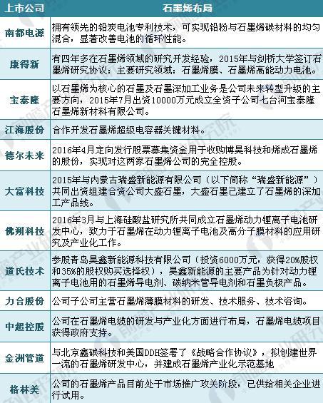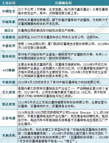 2018年石墨烯企业布局汇总