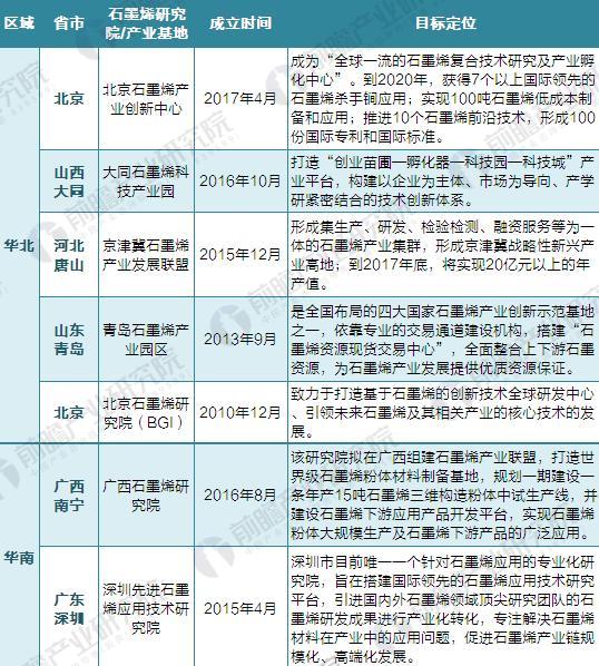 根据前瞻产业研究院《2018-2023年中国石墨烯行业深度市场调研与投资战略规划分析报告》不完成统计,截至2018年3月全国各地有21家在建或已建成的石墨烯研究院或产业基地,包括常州、无锡、重庆、北京、青岛等先发城市,地方政府的相关财政资金也有望在未来几年达到千亿规模。