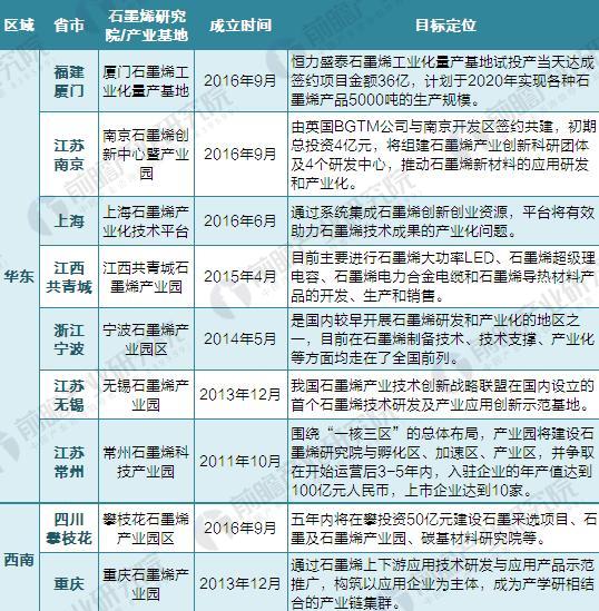 2018年各省市石墨烯基地汇总